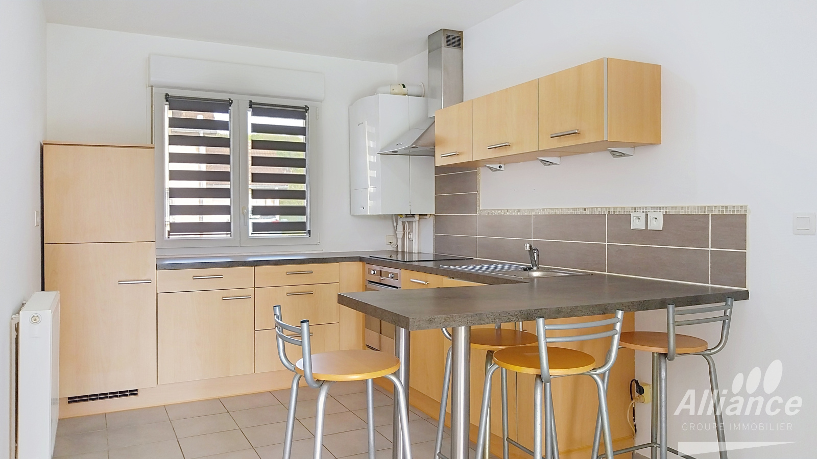 Au RDC, une entrée, un WC indépendant, un grand placard, cuisine équipée ouverte sur beau séjour exposé Sud avec accès de plain-pied à la terrasse. Accès direct au garage.