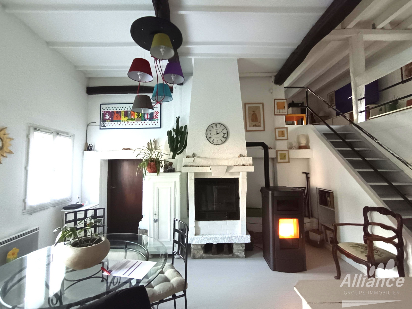 Menuiseries bois double vitrage, chauffage par poêle à granulés, combles isolés et électricité refaite.