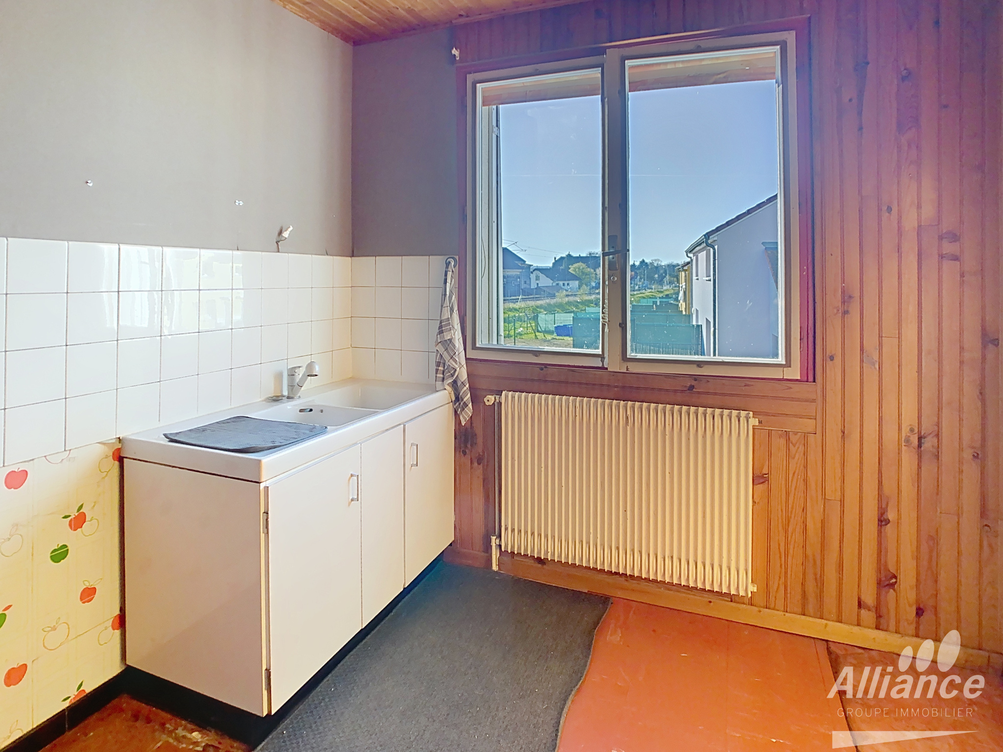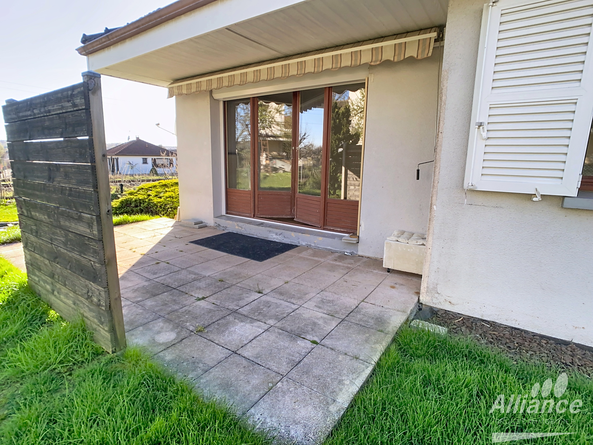 ALLIANCE GROUPE IMMOBILIER à Delle vous propose cette maison à rénover de 5 pièces. Elle comprend : une entrée, cuisine non équipée, séjour double avec porte-fenêtre sur terrasse, trois chambres, salle d'eau récente, wc.